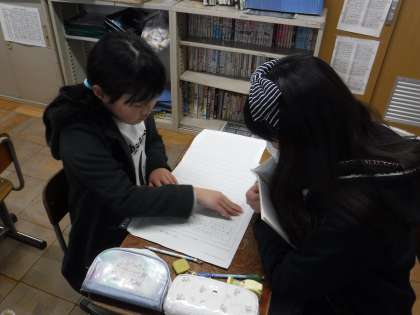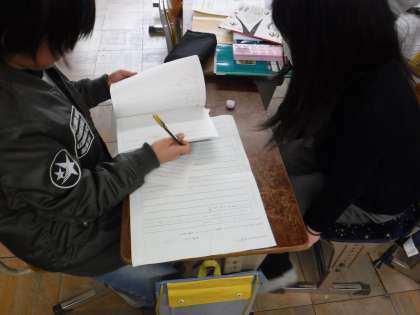 「ウナギのなぞを追って」の学習では,興味を持ったところを紹介する文章を書きます。まずは,自分の興味に沿ってキーワードを書出し,そこから要約を書いていきます。「このキーワードは必要やと思うで。」「これはいらんのちゃう?」など,グループで協力しながら取り組んでいます。