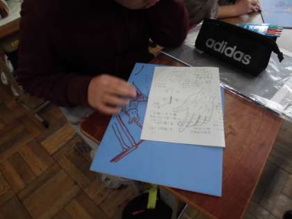 図画工作科「版から広がる世界」では,彫り跡を考えながら,自分の姿を彫刻刀で彫り進めていく子どもたち。肌の感じが出るように,向きに気をつけながら彫ることができました。