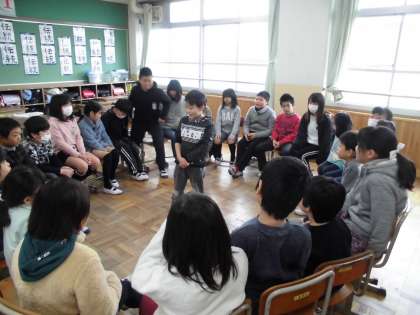 1月28日(月)はたてわりあそび。6年1組の教室では,なんでもバスケットが行われました。準備や片付けもみんなで協力しててきぱき進める姿から成長を感じました。