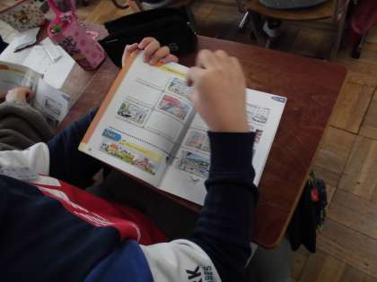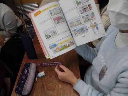 外国語科「道案内をしよう」では,ペアで目的地までの道案内をしました。何度もやり取りする中で,方向や動作を指示する言い方に慣れ親しむことができました。