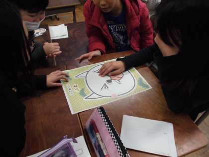 1月31日(木)の昔遊び・国際クラブでは,「ふくわらい」にも挑戦。おかしな顔ができて大笑いの子どもたちでした。