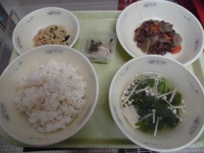牛肉とごぼうの煮つけは,甘辛い味付けでごはんとよく合いました。ごぼうも,時間をかけて煮ているので,とても柔らかく食べやすかったです。