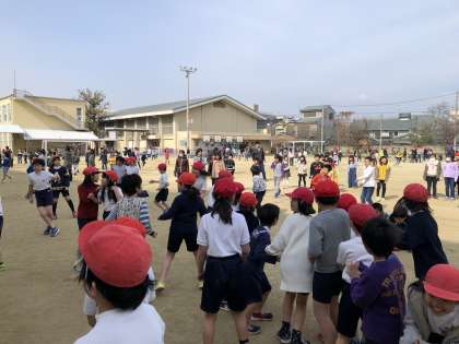 運動安全委員会の5・6年生が「ドッジビー交流会」を開いてくれました。