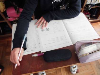 家庭科の研究会テストにチャレンジしました。今まで学習してきた内容を振り返るいい機会となりました。