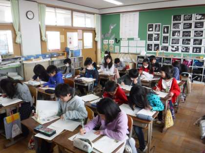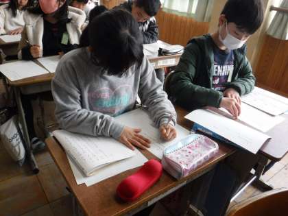 書写の学習は硬筆でした。今まで学んだことを意識して取り組みます。「ごんぎつね」の文章を集中して書いていました。