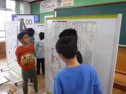 今日は今まで学習してきたことを3年生に発表する日です。子どもたちは本番の前に,もう一度発表の練習をしています。「もうちょっとここはこうしよう。」「こんなふうに言ってみよう。」など,最後までこだわって一生懸命取り組んでいます。