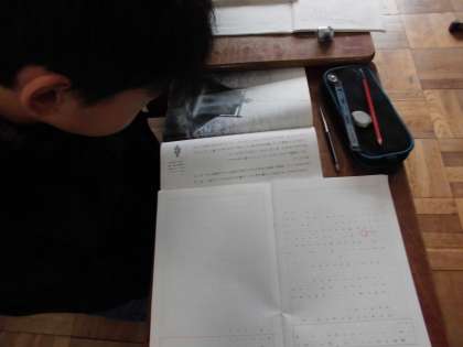 国語科「登場人物の関係をとらえ,人物の生き方について話し合おう」では,「海の命」の朗読を聞き,物語の世界に入っていきました。「登場人物の関係をとらえ,その生き方について自分の考えをまとめよう。」という単元のめあてをつくり,それを達成するための学習計画を立てました。