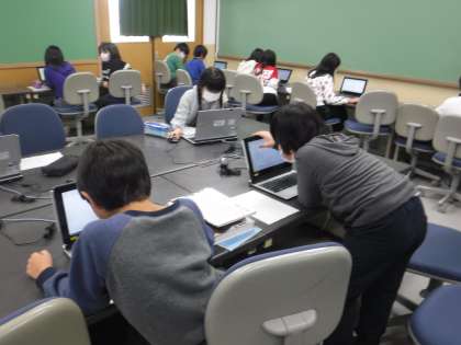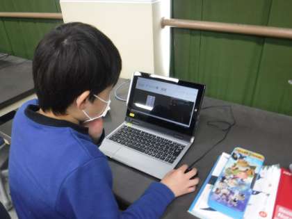 「わたしの研究レポート」の学習では,興味を持ったことについて調べてレポートを書きます。子どもたちはパソコンや本を使って調べていました。