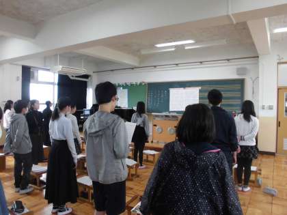 音楽科では,「大切なもの」の合唱をよりよくするために、楽譜に注目しました。音楽記号や音符の長さなどに気をつけることで,とても素敵な合唱になっていきました。