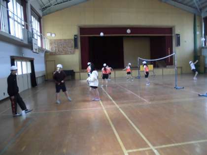 体育科では,「ソフトバレーボール」に挑戦。声をかけてパスをつなぎ合う姿は,とても和気あいあいとしたものでした。