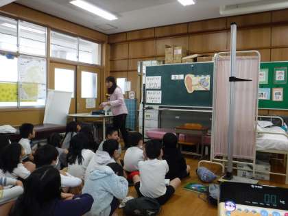 4年生の体重測定がありました。また,体重測定の前には3月3日の「耳の日」にちなんで,耳の働きについても学習しました。