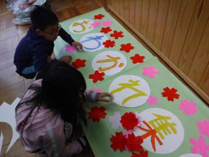 子どもたちは,6年生のお別れ集会に向けて掲示物の準備をしています。お花紙や折り紙を使ってきれいな掲示になるように取り組んでいます。