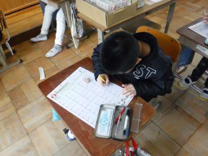 4年生は「漢字のまとめテスト」を行いました。1年間,学習してきた漢字の中から出題されます。このテストに向けて自主的に学習してきた子どもたちもいたようです。集中して取り組んでいました。