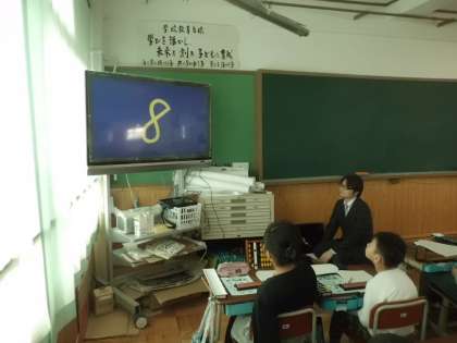 みんな一斉にテレビ画面に注目して,集中しながら楽しんで暗算ができました。
