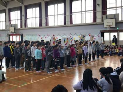 13日(水)のお別れ集会で,2年生はありがとうの気持ちを込めて呼びかけをしました。そして,卒業する6年生に感謝の気持ちを込めて,「メッセージ」の歌をプレゼントしました。気持ちが届きますように!