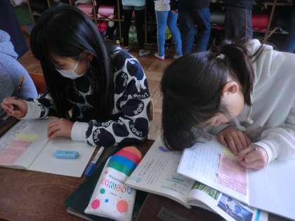 書き上げた物語は友だちと交流しました。