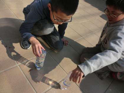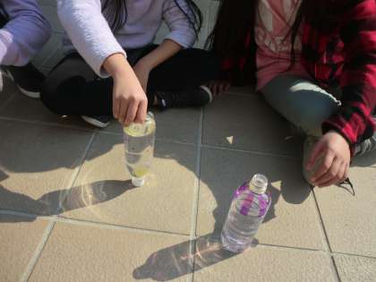 ペットボトルに水を入れてみたりと