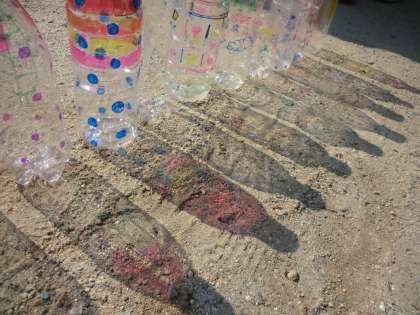 模様を描いたペットボトルを