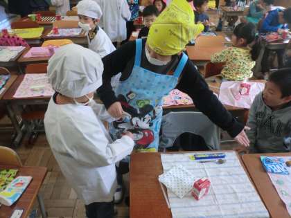 6年 「1年生の給食配膳サポート」 その3