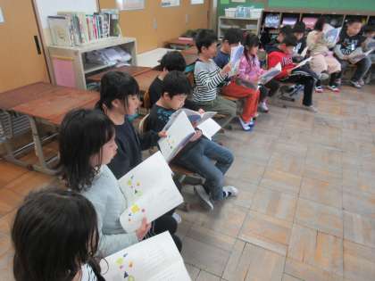 「だれかがふりむいた! どきん」など,自分のお気に入りの場面を工夫して,様々な読み方で読み合っていました。おうちでの音読でも工夫して頑張ってほしいと思います。
