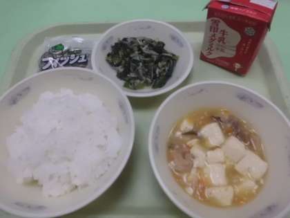 五目どうふは,豚肉や豆腐・玉ねぎなど6種類の具材が入っていました。とろみがあり,食べやすかったです。