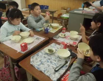 給食が始まって一週間経ちましたが,どの教室からも明るくて楽しそうな声が聞こえてきます。