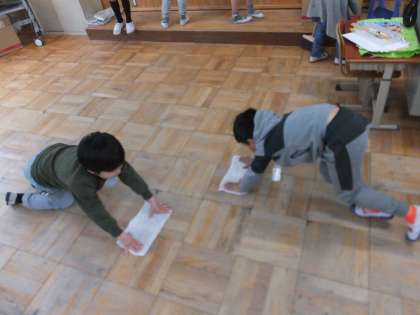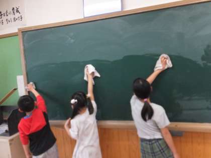 掃除の時間には,教室も,ほうき,ふき掃除などを分担して行っています。初めはきれいだった雑巾が,一週間の間にとても汚れていき,それだけ掃除場所がきれいになっていくことに,達成感を感じることができています。