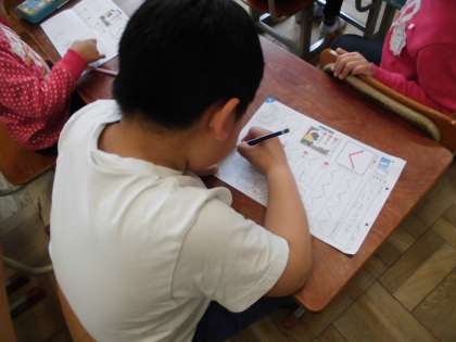 国語科の学習では,1時間に1文字,ひらがなの学習をしています。やり方にも慣れてきた子どもたちです。