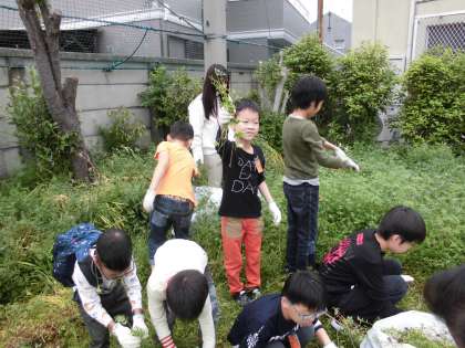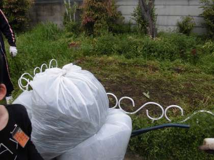とても草が多かったのですが,みんなで協力して草を抜いた結果,ごみ袋3袋が草でうまりました。暑い中でしたが,とてもよくがんばりました。