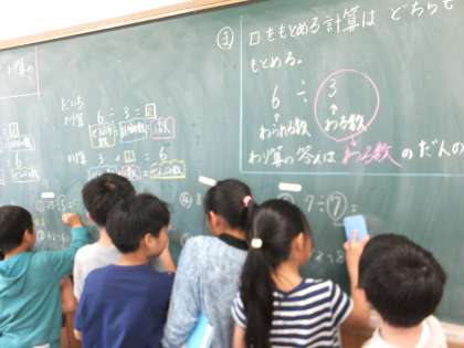 3年生のわり算の学習が進み,わり算にも,かけ算と同じように,わられる数とわる数があるということを学び,計算練習に取り組みました。わる数の九九を使うとわり算の答えが分かるということを繰り返し練習して定着できるよう頑張っていました。