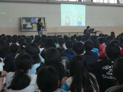 今日の朝会では校長先生から