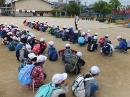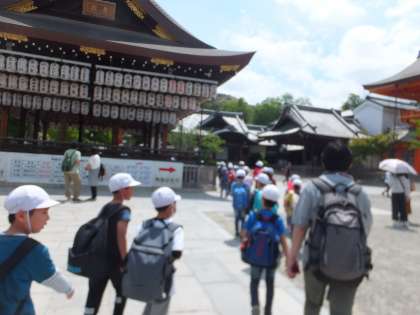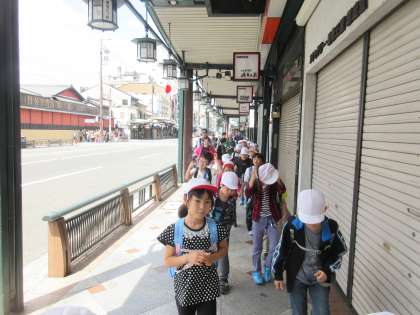 5月15日(水)に将軍塚へ遠足に行きました。「みんなとなかよく」「安全とマナー」「遠足も勉強」をめあてに一日頑張ります。JRや京阪を乗継ぎ,四条通り,八坂神社と,京都の町中を見学しながら歩みを進めていきました。