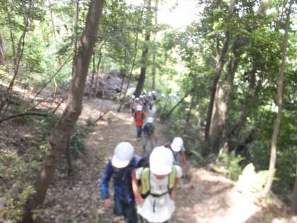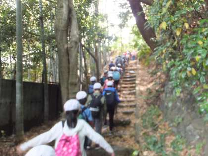 3年生は,円山公園を超え,いよいよ将軍塚を目指して,山登りに入りました。急な山道も,友だちどうして励まし合い,応援しあいながら登っていきました。