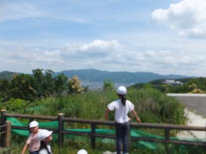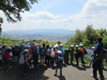 お弁当を食べ終わったら,山頂公園で遊んだり景色を眺めたりして過ごしました。帰りに青龍殿とは別の京都の南西部を眺められる展望台から京都タワーや東寺を見て,学校へと戻りました。