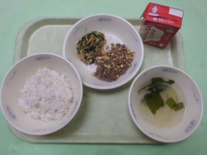 ビビンバは,自分で肉と卵・ナムルを混ぜて食べる献立でした。児童は楽しそうに混ぜて食べていました。また,「ごはんと良く合う味付けだった」「彩りがきれいだった」などの声を聞かせてくれました。