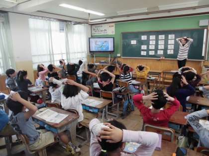 ALTのモンタナ先生と外国語活動の学習を行いました。ゲームを交えて楽しみながら,天気や遊びなどの伝え方を学習することができました。