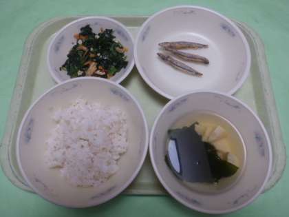 今日は,5月の和献立でした。今が旬のきびなごやたけのこ・ワカメを使いました。若竹汁は,かつおぶしと昆布を使って出汁をとり旨味を味わえる献立にしました。