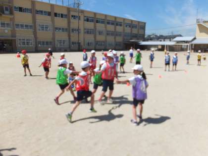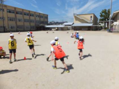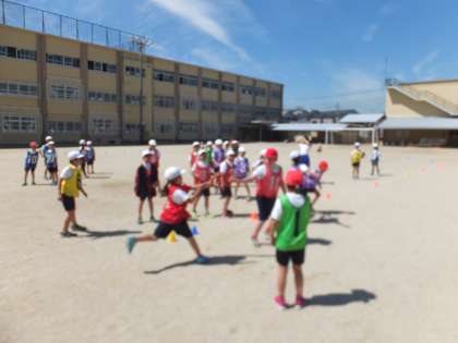 3年生の体育の学習で,リレーに取り組んでいます。コーナーを膨らまずに回る,最後まで全力で走る,バトンの受け渡しをスムーズに行うなど,それぞれのグループでめあてをもって学習を進めています。競争する中で,より速く,よりスムーズになるように考える姿が見られます。