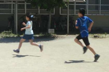 運動場を走り回り,気持ちのよい汗をかく