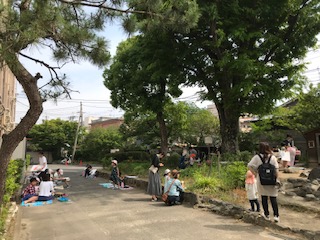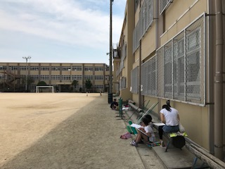 快晴の中50名以上が参加し,校舎や東の森など校内の風景を思い思いに描いていました。