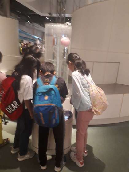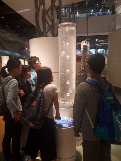 小雨の中、到着です。グループ活動です。早速、科学の不思議に歓声が上っています。