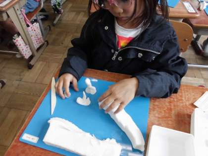 図画工作科では,粘土をこねたりちぎったりと,粘土の感触を楽しみました。子どもたちはとても楽しそうでした。