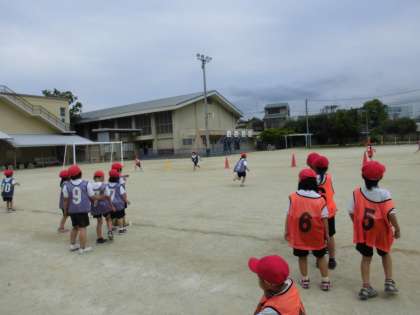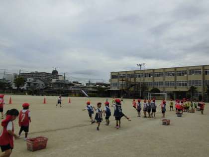体育科では「リレーあそび」をしています。何度もやっていく中で,スピード感のあるレースになってきました。