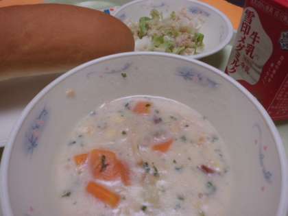 チャウダーは,給食室でルウから作りました。ツナサンドとの相性も良く児童からも大好評でした。