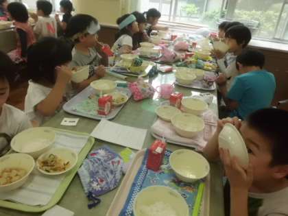 今日は,一年一組の児童がランチルームに来てくれました。初めてのランチルームでの給食時間を笑顔で過ごしてくれました。