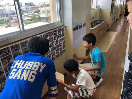 修学旅行の写真を見ています。よい思い出を振り返り,学校生活で活かしていきたいですね。