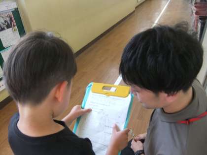 生活科で,学校の先生と仲よくなるために,インタビューをしました。自分の好きなものを伝えたり,先生に質問したりして,お話しできました。ドキドキしながら先生と握手できて嬉しそうでした。