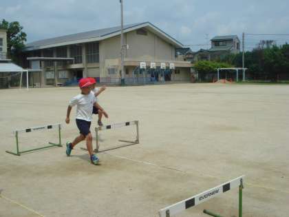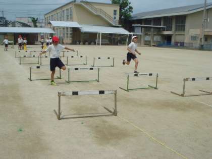 リズムよく跳んで,ハードル走を楽しんでいます。