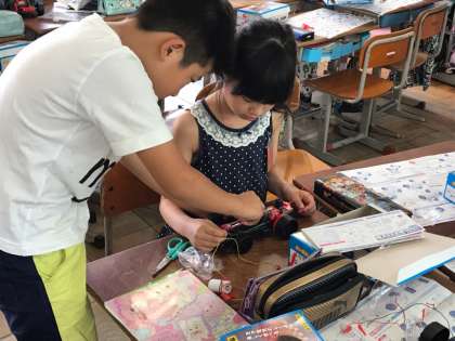 理科の「電気のはたらき」の学習でモーターカーを作りました。