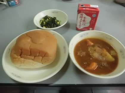 トマトシチューは,夏野菜のトマトを使って作りました。トマトのさっぱりした味つけでパンとの相性も良かったです。児童からは「パンとの相性が良かった」「野菜が甘くて美味しかった」などの声を聞かせてくれました。